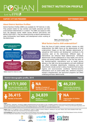 For a deeper view of malnutrition and its multiple determinants in Uttar Pradesh’s districts, please access District Nutrition Profiles (DNPs) for each district in UP below.